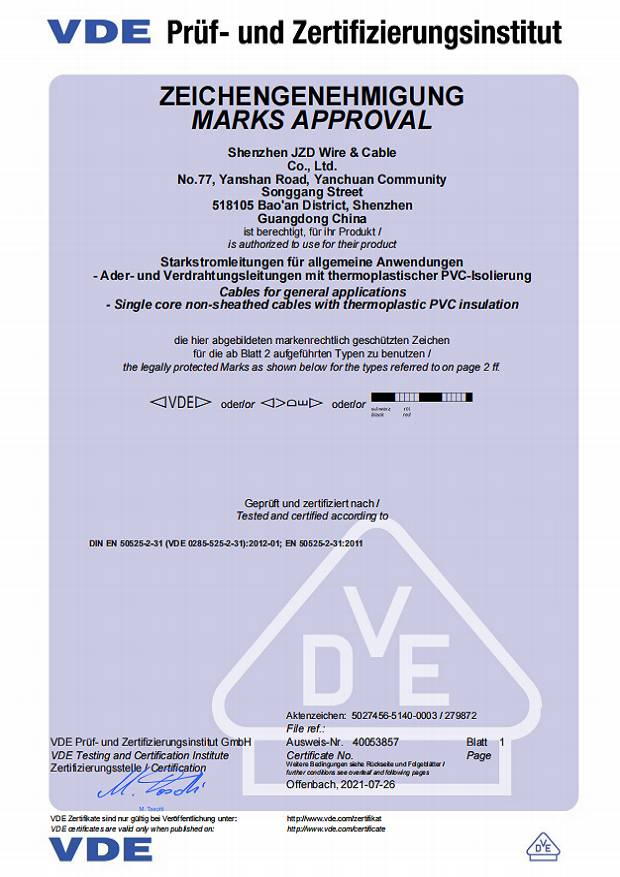 深圳建圳達電線電纜有限公司,成立于2000年,是一家電線電纜制造商,我們通過了世界各地不同市場的多數(shù)認證,如:CCC、RoHS、CB、SAA、TUV、VDE、PSE、BPS、UL、CSA。我們根據(jù)定制產(chǎn)品不斷更新新的認證。經(jīng)過數(shù)十年的發(fā)展,我們與來自世界各地的客戶建立了長期的合作關系。我們曾經(jīng)是菲律賓機場,,柬埔寨的電力站,美國的醫(yī)院,工廠,埃塞俄比亞的水電站項目。我們是一家值得信賴的電線供應商。